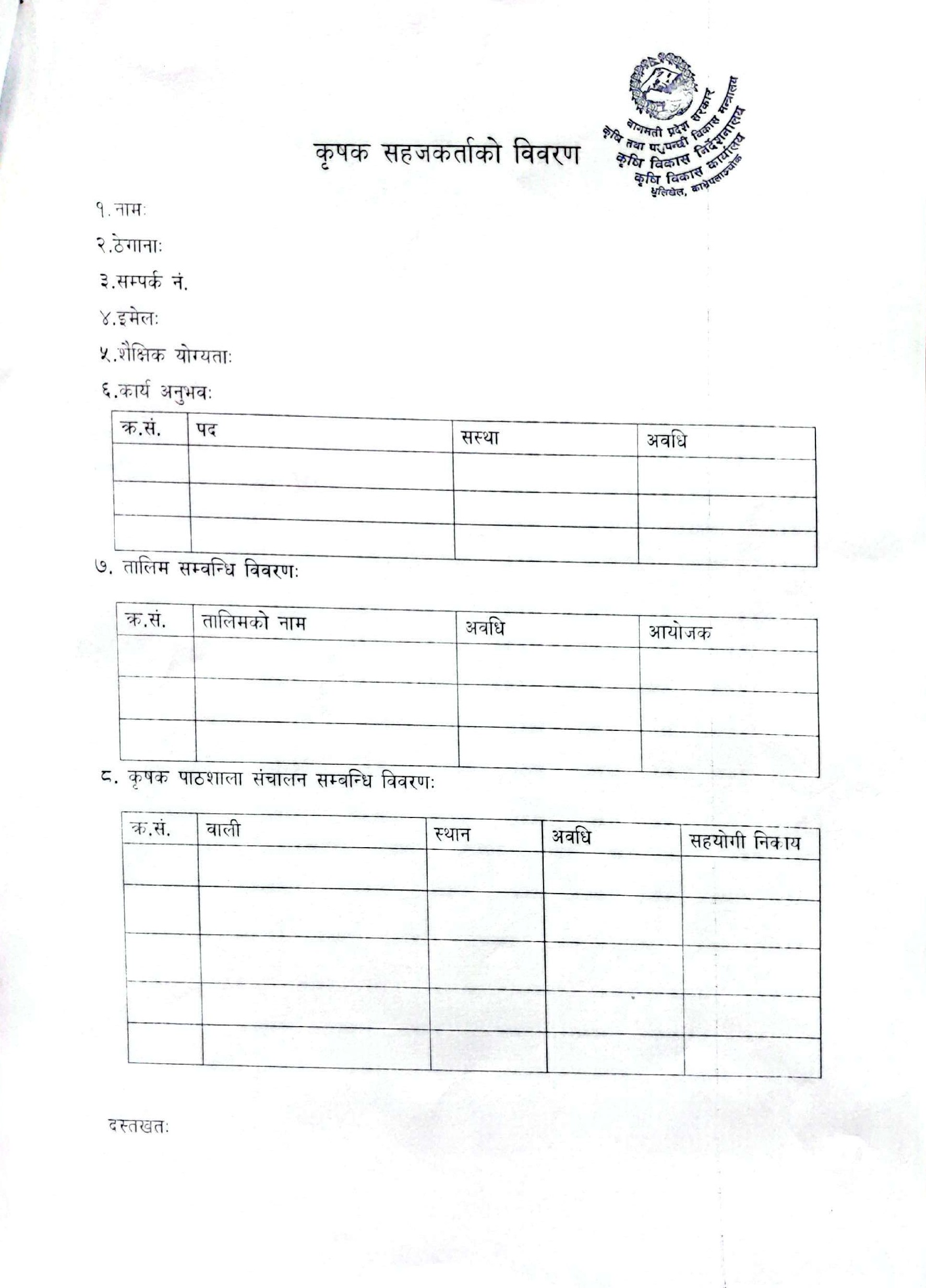 कृषक सहजकर्ता मार्फत कृषक पाठशाला संचालनका लागि आवेदन पेश गर्ने सम्बन्धि फारम 354.26 KB